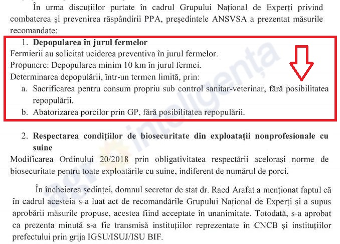 Un document desecretizat de la final de august, intrat în posesia agrointeligenta.ro vorbește despre posibilitatea sacrificării porcilor din gospodăriile particulare, sub stricta supraveghere a medicilor veterinari.