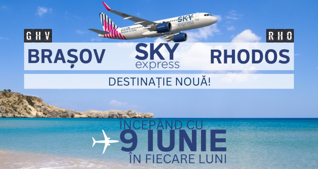 Începând cu 9 iunie, operatorul grec SKY express va reveni pe Aeroportul Internațional Brașov pentru a opera în premieră pentru pasagerii noștri ruta Rhodos RHO – Brașov GHV – Rhodos.