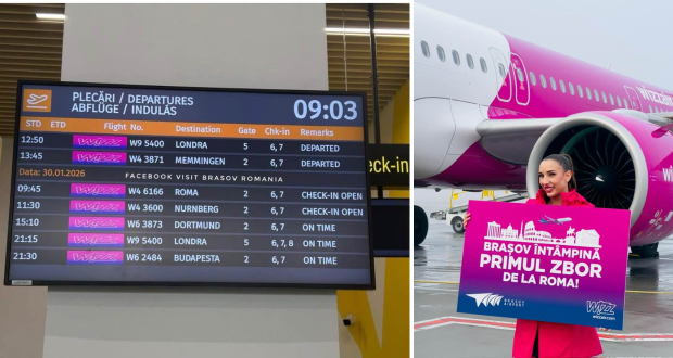 Noua conexiune aeriană Brașov–Roma, operată de Wizz Air, a avut parte de un start excelent, confirmând încă din prima săptămână că era o rută așteptată atât de români, cât și de comunitatea din Italia. Gradul de ocupare al aeronavelor s-a apropiat de 100%, iar peste 1200 de pasageri au călătorit deja între inima României și capitala Italiei.
