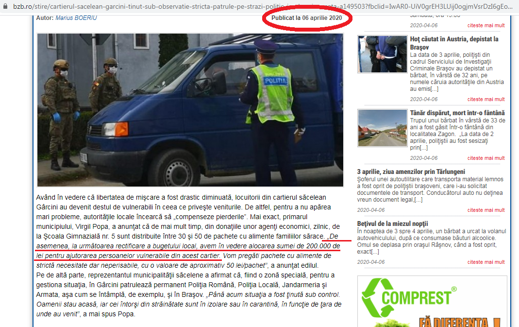 Motivat atunci de starea de urgenta, primarul Virgil Popa a propus in luna aprilie intai in presa, ulterior printr-o propunere catre Consiliul Local, să aloce suma de 200.000 de lei pentru ajutorarea persoanelor vulnerabile din cartierul Garcini. (Detalii AICI!)