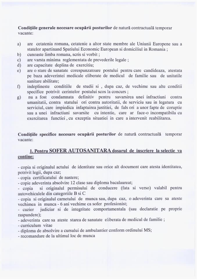 Serviciul de Ambulanță Județean Brașov anunță selecția de dosare în vederea angajării pe o perioadă determinată de maximum 6 luni a următoarelor posturi: