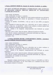 (NU SUNT ACCEPTATE DOSARELE CANDIDAŢILOR CARE ACTIVEAZA IN SPITALELE PUBLICE /PRIVATE IMPLICATE IN GESTIONAREA CAZURILOR COVID-19!)
