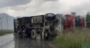Accidentul a avut loc în această după-amiază, cel mai probabil, din cauza neadaptării vitezei la condițiile de drum (carosabil umed). Camionul în care se aflau 37 de vaci s-a răsturnat în mijlocul drumului. „Un autocamion cu remorcă, ce transporta un ...
