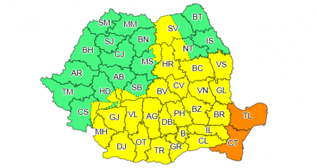Notă: Local și temporar, intensificări ale vântului vor fi și în celelalte zone, cu precădere în Transilvania.