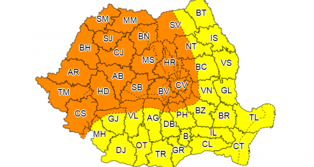 În după-amiaza zilei de joi (18 iunie) și la începutul nopții de joi spre vineri (18/19 iunie), în Banat, Crișana, Maramureș, Transilvania și în zonele montane vor fi perioade cu averse torențiale și se vor acumula cantități de apă de peste 40 l/mp și pe arii restrânse 50…80 l/mp.
