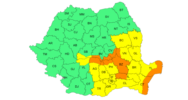 În intervalul menționat, în estul Munteniei și pe litoral vor fi intensificări puternice ale vântului, cu viteze de 70…90 km/h.
