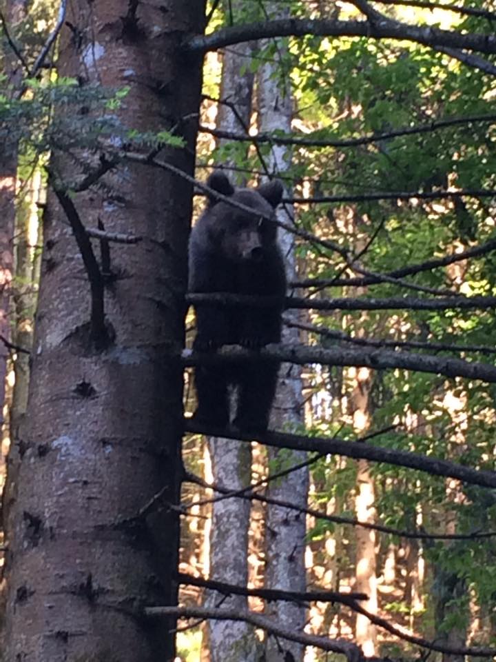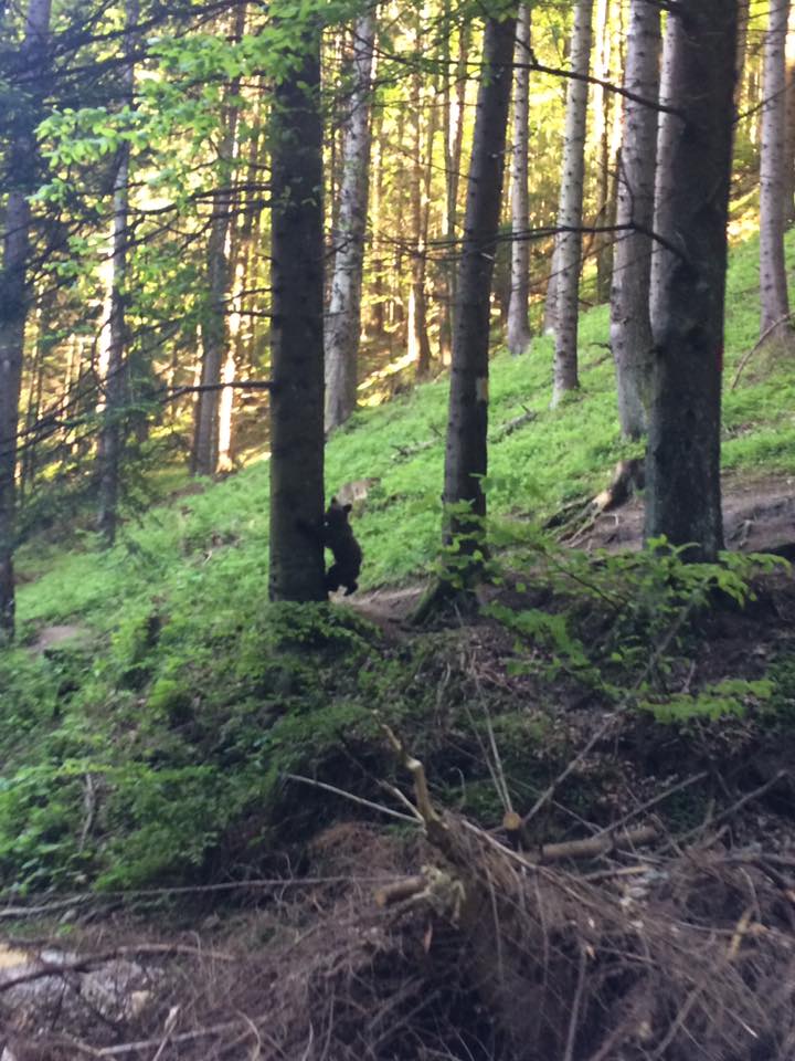 De această dată, un urs simpatic și-a făcut apariția în zona Canionului 7 Scări, speriindu-se și ajungând cocoțat sus într-un copac. Glumind, ne putem gândi că a dorit să încerce tiroliana.