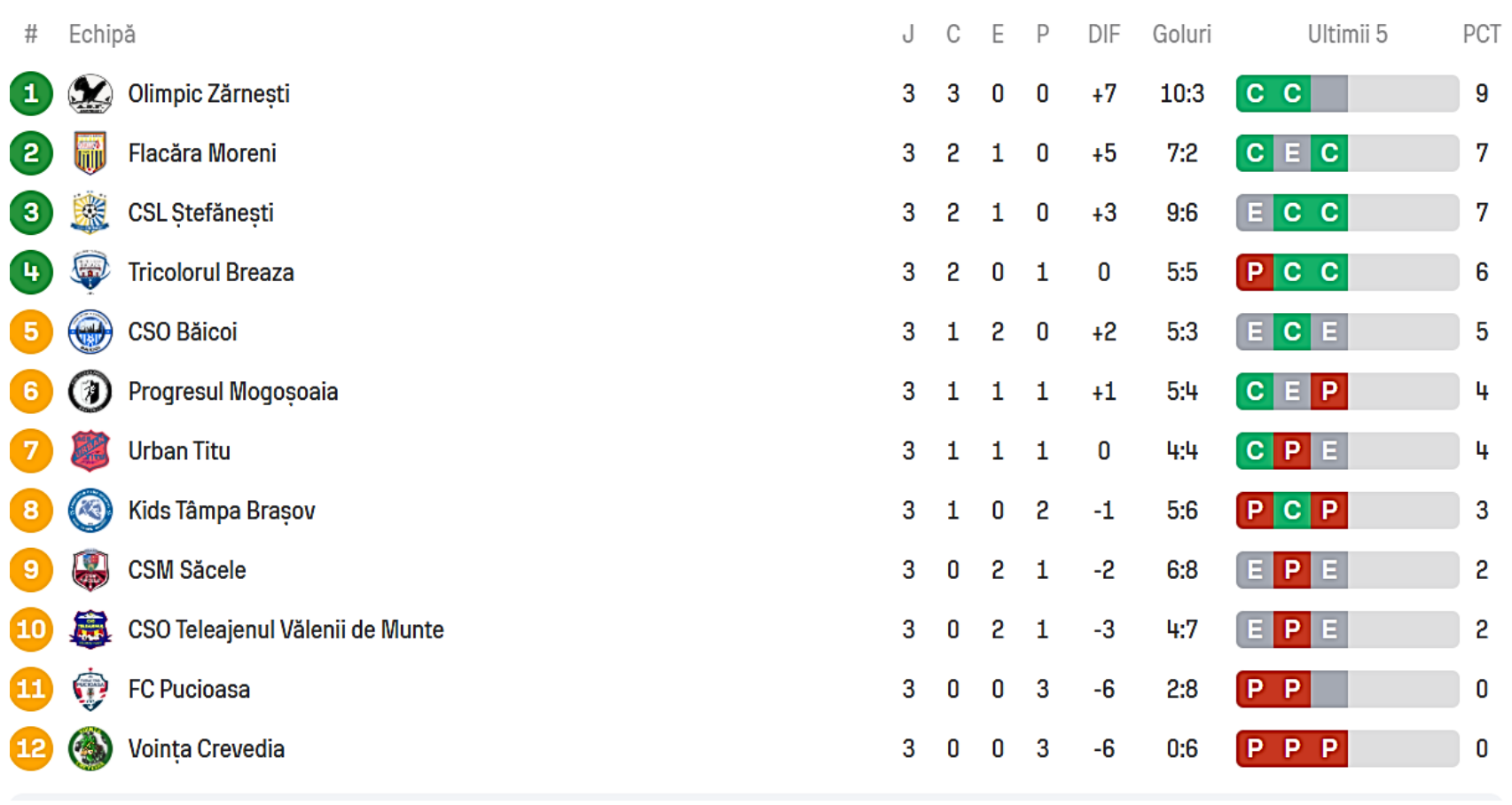 Olimpic Zarnesti are o linie de campionat impresionanta: 3 victorii din 3, toate la scor, dovada fiind si golaverajul de 10-3.