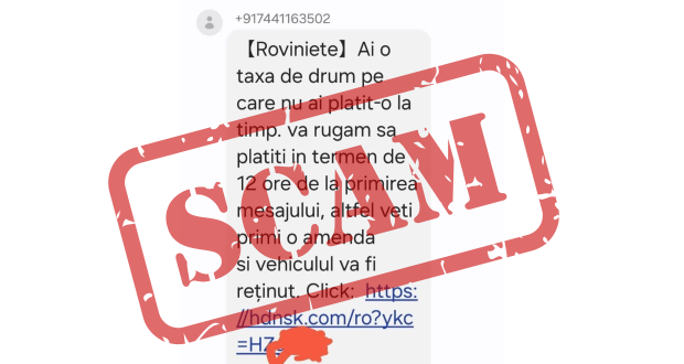 Ministerul Afacerilor Interne atrage atenția asupra unui nou val de mesaje false care circulă în ultimele zile, prin care șoferii sunt anunțați că ar avea „rovinietă neplătită”. Mesajele sunt redactate alarmist, conțin amenințări privind reținerea mașinii în câteva ore și includ linkuri suspecte. Autoritățile subliniază că aceste SMS-uri nu provin de la instituții ale statului și reprezintă o tentativă de fraudă.