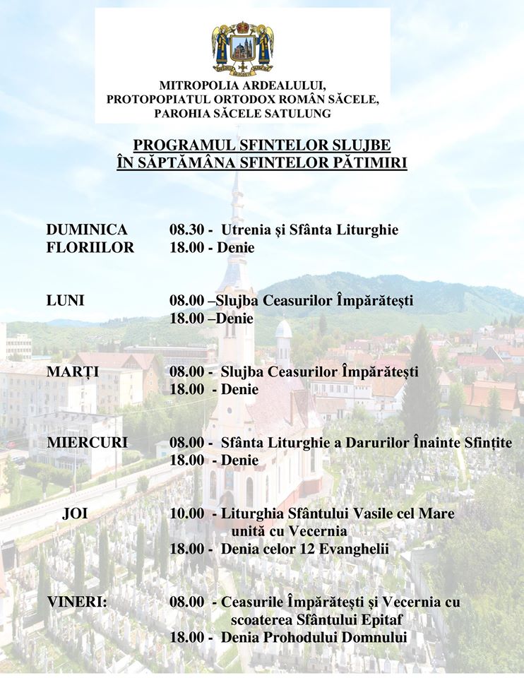 Slujbele ce vor fi săvârșite în Biserică de către preoții Parohiei Ortodoxe Sacele Satulung vor fi transmise în direct credincioșilor pe Facebook.