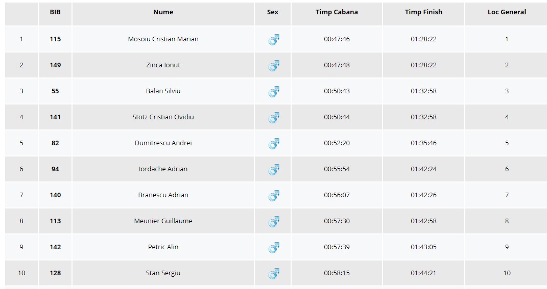 Mai jos găsiți Top 10 cursei.