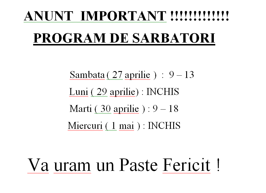 Home / Actual / Program cabinet veterinar BetoVet de Sărbătorile Pascale