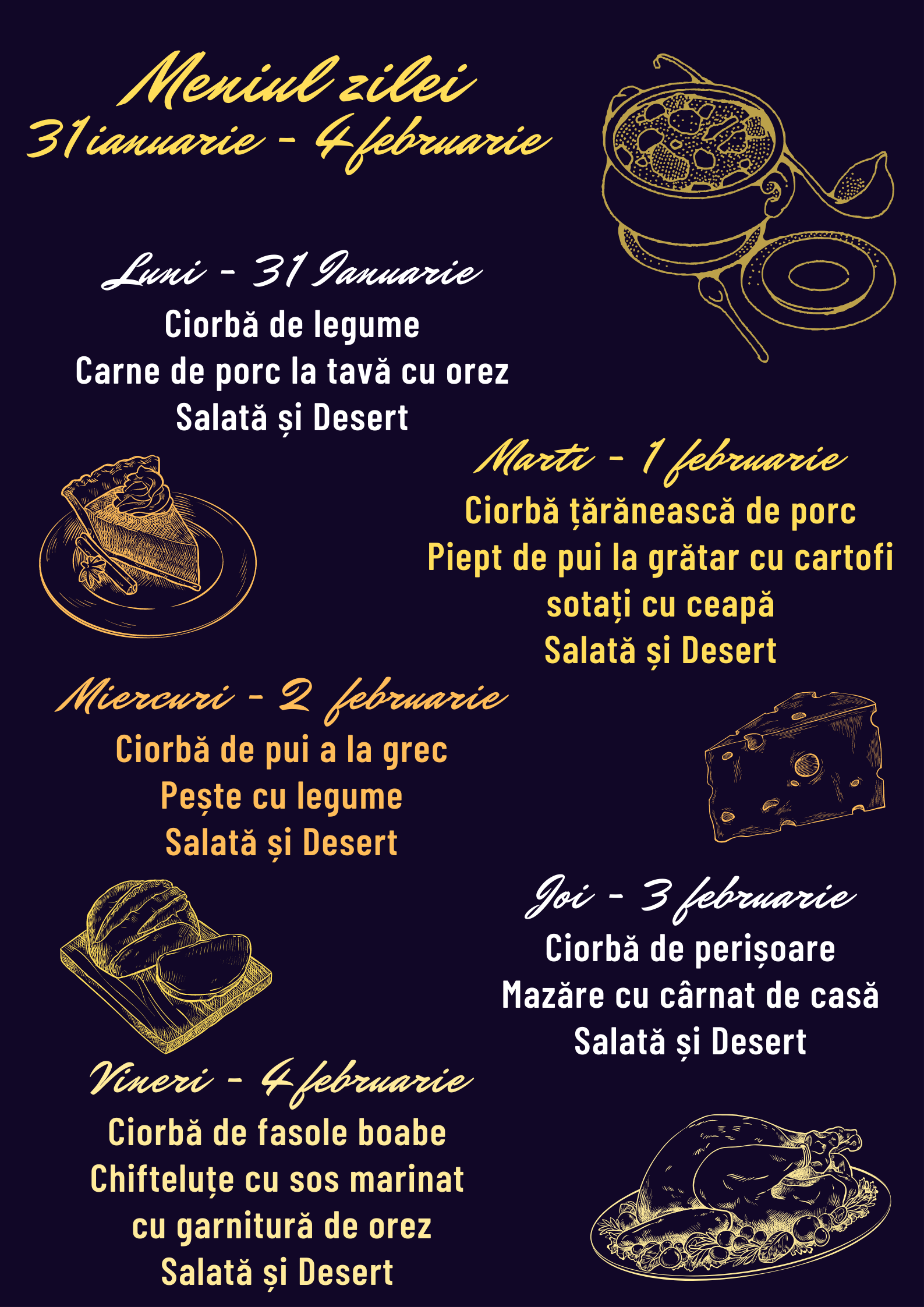 MENIUL ZILEI – Zilele de 31 ianuarie – 4 februarie 2022