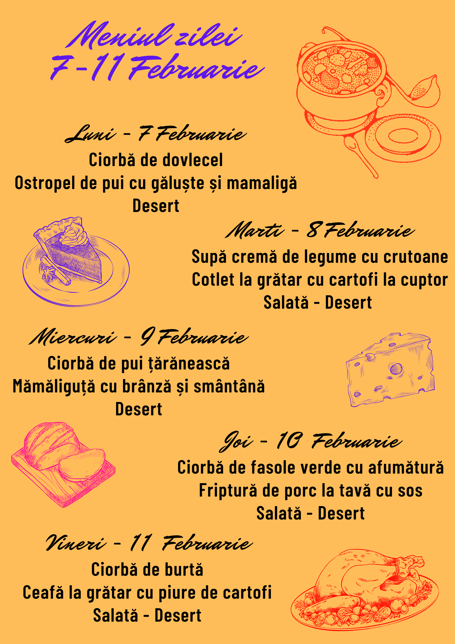 MENIUL ZILEI – Zilele de 7 – 11 februarie 2022