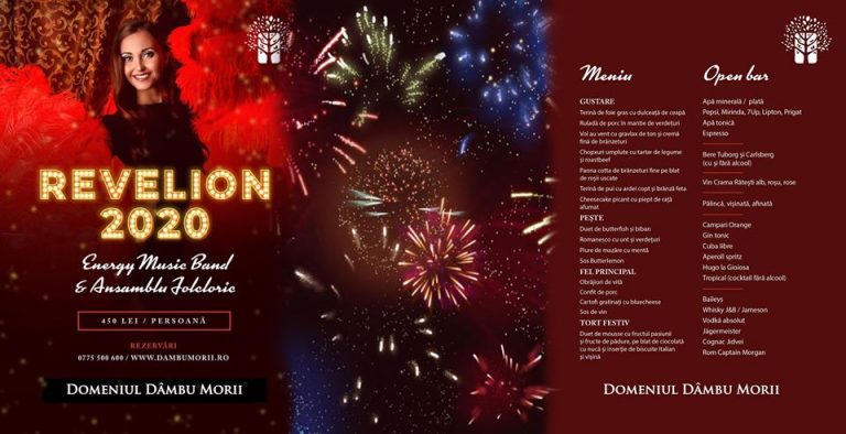 Dacă ești în căutarea locului ideal pentru petrecerea dintre ani, te așteptăm la Domeniul Dâmbu Morii pentru REVELIONUL 2020, într-o locație superba în inima naturii. La Domeniul Dâmbu Morii vă așteaptă un program de excepție alături de Energy Music Band și Ansamblu Folcloric. Meniul este variat, compus din gustare, pește, fel principal și tort festiv, … Continue reading REVELION 2020 la Domeniul Dâmbu Morii, într-o locație superba în inima naturii!