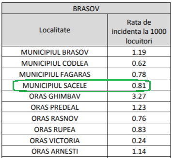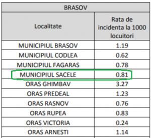 Municipiul Săcele se află în zona verde, cu un indice de 0,81 şi intra sub incidenţa scenariului 1.