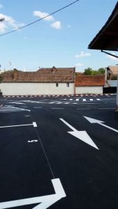 S-a turnat covor asfaltic nou, s-au marcat locurile de parcare, acestea fiind acum disponibile inclusiv pentru persoanele cu dizabilităti si s-a sistematizat zona.