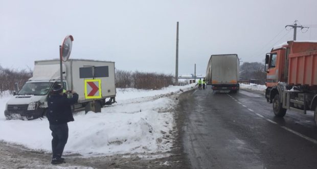 Din primele informații aflăm că sunt implicate două autovehicule: un TIR și un camion.