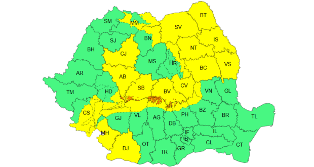 Avertizarea de intensitate ridicată se aplică local în Carpații Meridionali, la altitudini de peste 1600 m.
