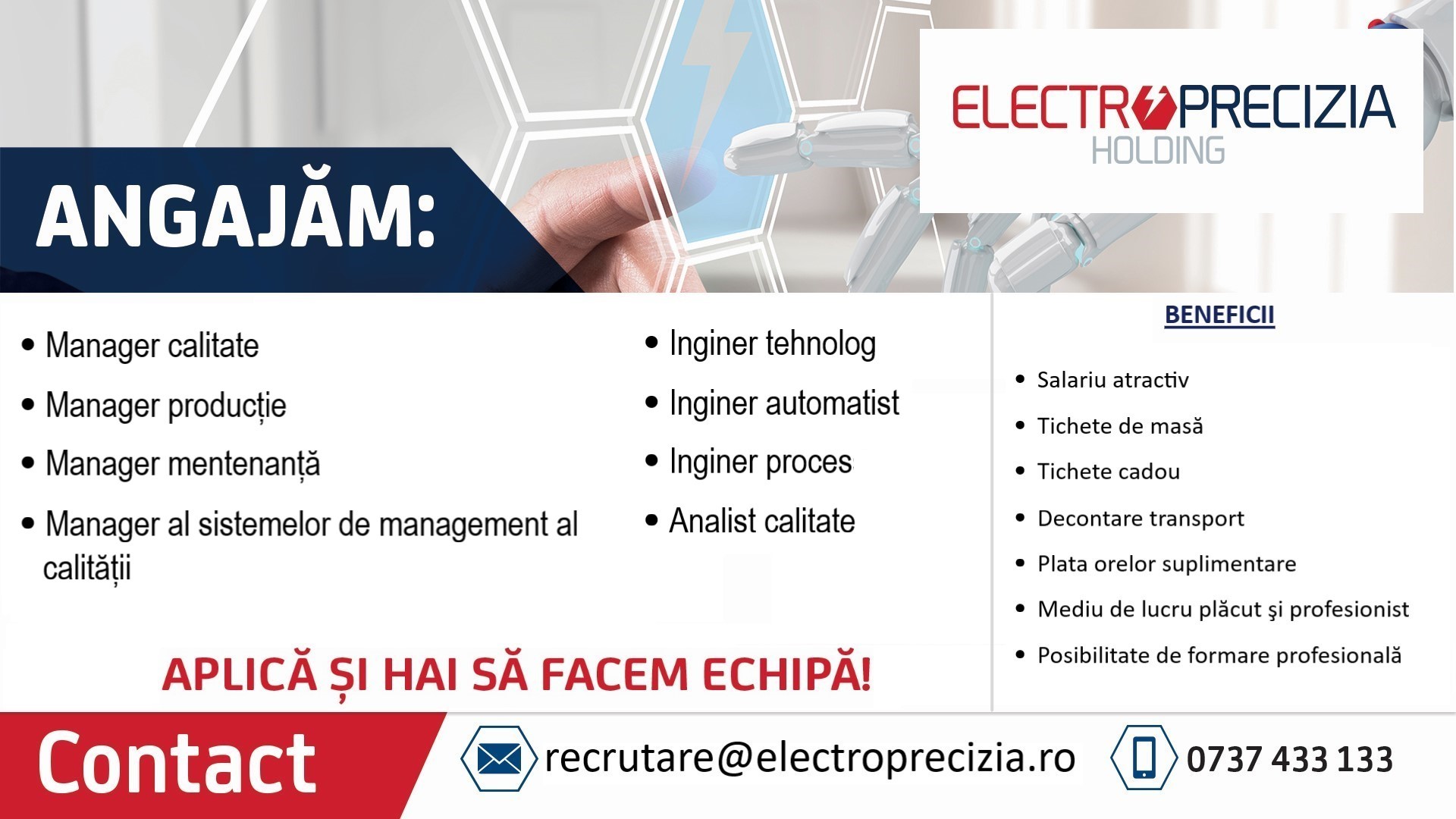 Vino în echipa Electroprecizia Holding! Compania săceleană caută personal pentru mai multe posturi